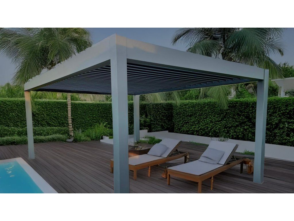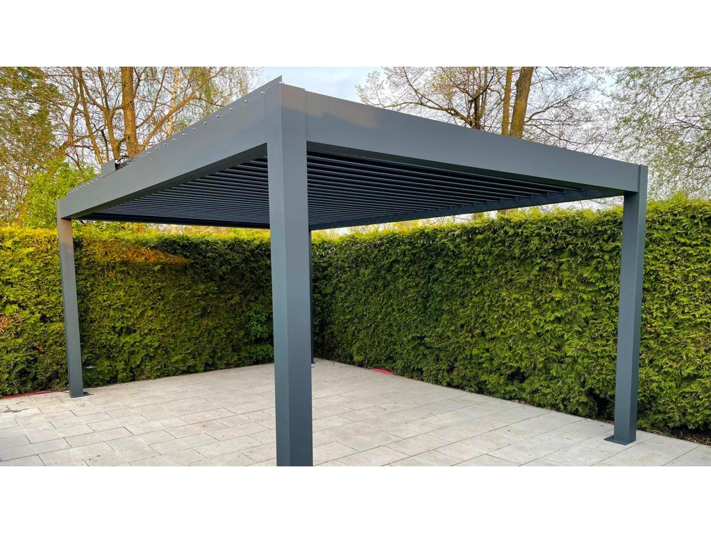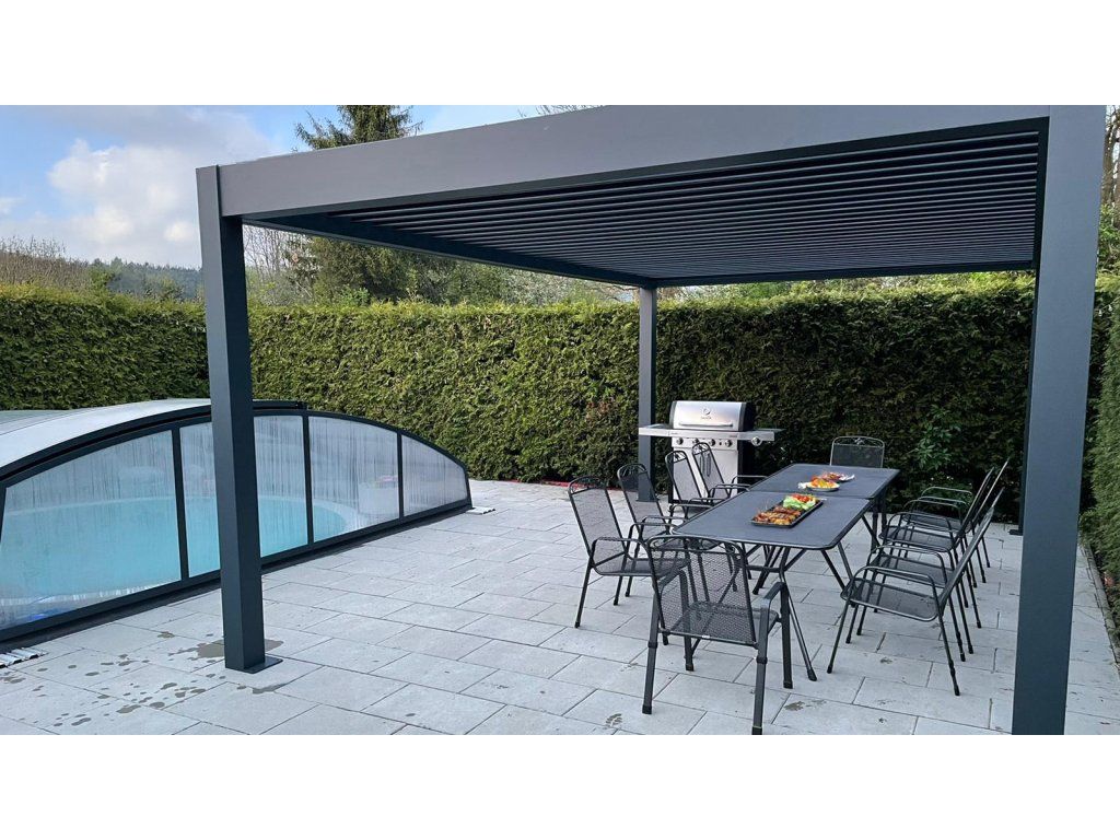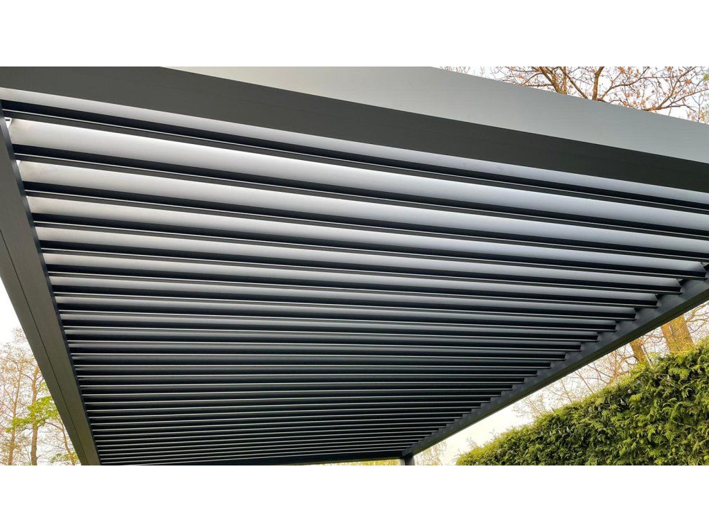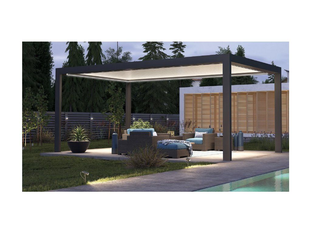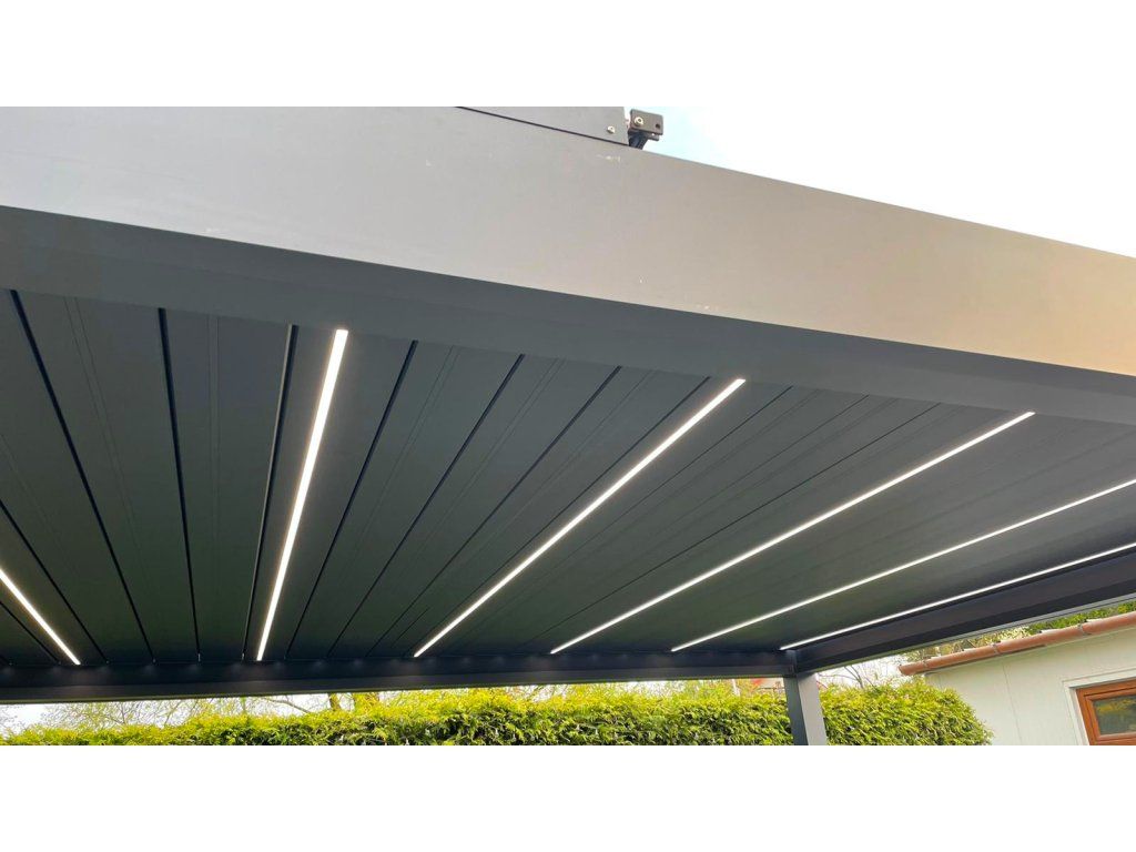 Díky elektricky ovládaným lamelám, integrovanému LED osvětlení a odolné hliníkové konstrukci se jedná o chytré řešení pro celoroční využití.