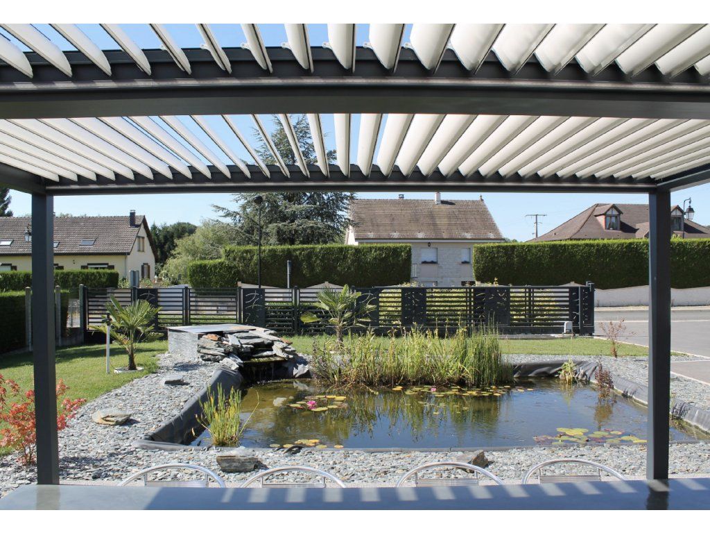 Bioklimatická pergola umožňuje aktivně regulovat světlo, stín a proudění vzduchu pomocí otočných lamel.