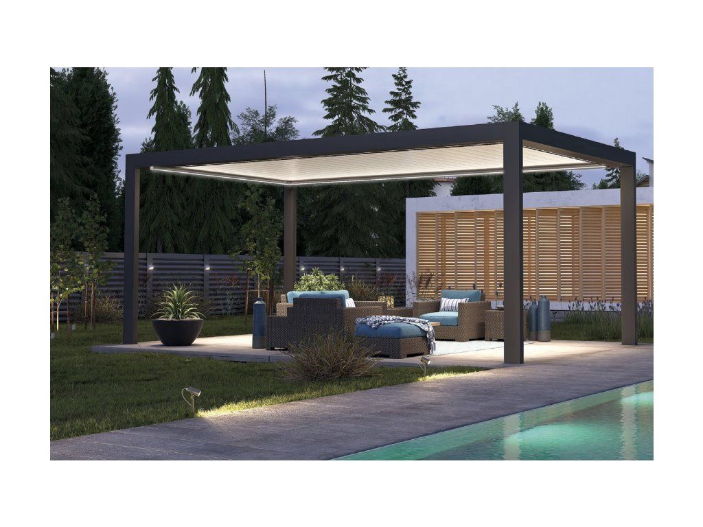 Díky elektricky ovládaným lamelám, LED osvětlení a elegantnímu vzhledu získáte nejen stín, ale i pohodlí, které můžete využívat celý rok.