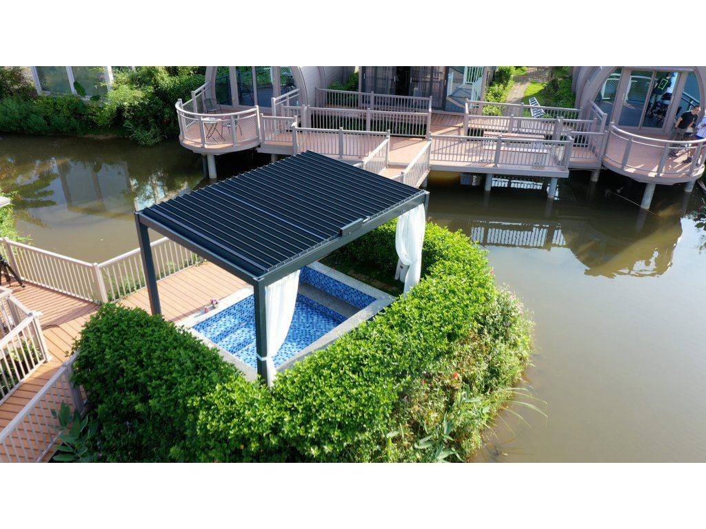 Bioklimatická pergola, která se stane jedním z dominantních a praktických prvků Vašeho rodinného domu či terasy. Volně stojící bioklimatické pergoly od nás jsou vyráběny z vysoce kvalitní slitiny hliníku, jsou stabilní a dokáží ochránit nejen před sluncem ale i deštěm. Střecha je tvořena z lamel, které lze různě naklápět pomocí elektrického ovládání.